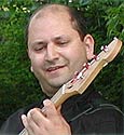 Mit 10 Jahren spielte ich zum Entzücken der lieben Verwandten "Rote Rosen, rote Lippen, roter Wein" auf der Bontempi - Heimorgel. Das Hören der Beatles brachte mein musikalisches Weltbild dann gehörig durcheinander. Mutti musste eine Gitarre kaufen. Es dauerte nicht allzu lang und die erste Band wurde gegründet. Die Gehversuche waren noch ungeübt. 1980 tat ich mich mit Freunden zusammen und die Band "Mescalero" verarbeitete Einflüsse zwischen hartem Rock, Jazz und psychedelischer Musik. Es folgte "Taurus". Leider konnten sich die Musiker nicht entscheiden, ob man weiter Jazzrock machen oder auf den "NDW"- Zug aufspringen sollte. Die Band arbeitete damals schon mit Violine und Saxophon, teilweise auch mit Posaune. "Syrinx" hieß die nächste wichtige Station. "Take - off - Jazz" nannte sich die musikalische Mischung. Lord Knuds Neffe Kay Kuntze bediente damals die Keyboards. Ich selbst erweckte "Taurus II" zu neuem Leben, eine Band, die sich im Süden Berlins äußerster Popularität erfreuen konnte. Hier begegneten die späteren musikalischen Partner Erko und Chris einander. Über "Paul Pickup & The Purplegang" ging es dann zu "Turnpike", einer anspruchsvollen Cover-Band mit einem Programm von Elvis über Beatles und Stones bis hin zu Deep Purple, ZZ Top, ankommend bei Bruce Springsteen, Billy Idol und MMW. Ich musizierte zum ersten Mal mit Chris Scharmann gemeinsam in einer Band und bildeten ein homogenes Gitarrengespann. Nebenher und bald ausschließlich wurde das Akustik - Duo "Erko & Chris" etabliert. Aus der "Erko & Chris - Band" wurden schließlich die "Flying Bullfrogs" mit Goran Sturm an den Drums. Für alle Beteiligten ist das eine gewinnbringende Zusammensetzung. Zu dem wurde ich bei den "Flying Bullfrogs" zum ambitionierten Bassisten. Bei "Only Wednesday", einer Spandauer Coverband frön ich weiterhin der Gitarrenleidenschaft. Neben dem eigenen Musizieren ist für mich auch die Förderung musikalischer Talente besonders wichtig. Schon mit 17 Jahren hatte ich meine ersten Schüler, in Kirchengemeinden betreute ich stets sogenannte Rock AG's. Zurzeit erfährt die Kinderband Melanch - Töner und die Jugendgruppe Seven Of Heaven Begleitung. Ich zähle James Burton, Hank Marvin, Scotty Moore, George Harrison, Eric Clapton, George Benson und Larry Coryell zu meinen gitarristischen und Elvis Presley, Ricky Nelson und Cliff Richard zu meinen gesanglichen Vorbildern. Am Bass beeindrucken mich Marcus Miller, Duck Dunn, Paul McCartney, Sting, Billy Cox sowie Bill Wyman. Zudem wurde ich bei den "Flying Bullfrogs" zum ambitionierten Bassisten, bin nun aber wieder an der Gitarre zu finden. Die Spandauer Coverband "Only Wednesday" habe ich nach einigen Jahren verlassen. |