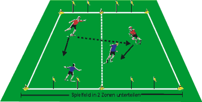 '2 gegen 2' zum '4 gegen 4' (also mit einer Viererkette) gesteigert werden
